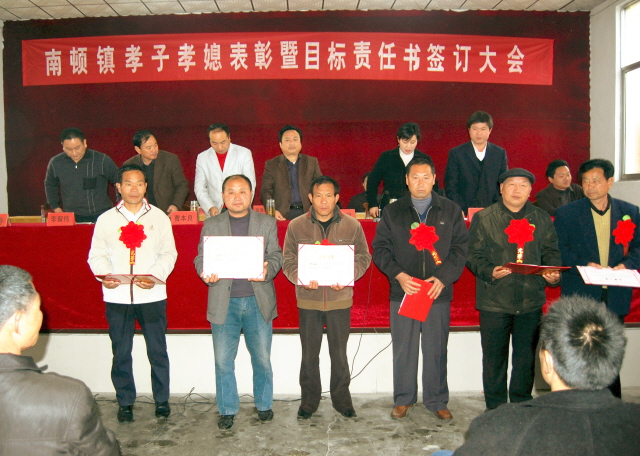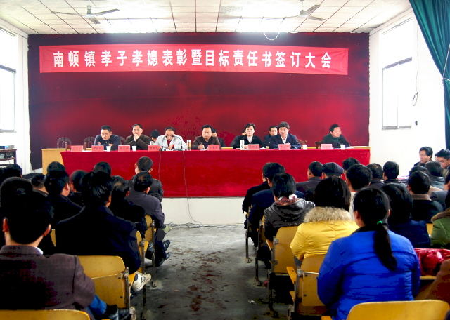 南顿镇党委书记刘家显号召全镇干群以先进典型为榜样,学习他们勤劳善良、孝亲敬老的传统美德;学习他们吃苦在前、享受在后的高尚情操;学习他们任劳任怨、无怨无悔的优秀品质;学习他们默默无闻、无私奉献的崇高精神,全镇掀起“学先进、争模范、促发展”的热潮,营造家家比和谐、人人比文明;家家比敬老、人人比孝道;家家比致富、人人比贡献的良好氛围,让文明新风吹遍全镇,推进 “平安南顿、和谐南顿、小康南顿”的创建。