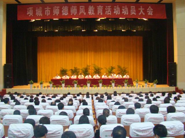 本网讯 8月16日上午,项城市师德师风教育活动动员大会在市人民会堂召开。市人大常委会副主任尚纯合,副市长王洪涛,市政协副主席熊向华,市政府副秘书长付新峰及部分老干部等出席动员会。全市各乡镇、办事处中心校长、师训专干、中小学校长,城区各学校领导班子成员及教师、班主任代表,市教体局全体工作人员参加了会议。