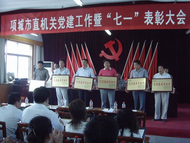 市直工委滕明明宣读了关于表彰五好基层党组织、优秀共产党员、优秀党务工作者的通报。并现场颁奖。(项城公众网新闻中心编辑 张纪友)