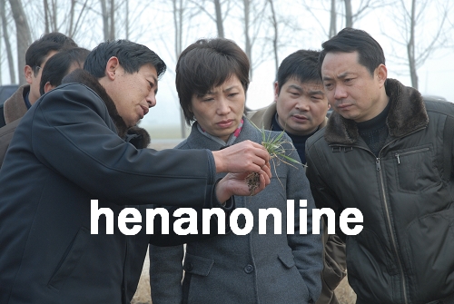周口市委常委、项城市委书记王宇燕(中)组织农业专家对已浇麦田进行技术指导
