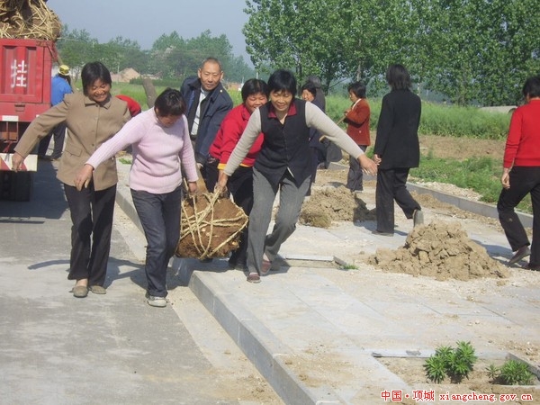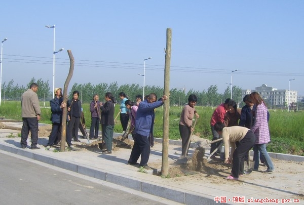 4月25日,阳光明媚,一辆满载香樟树的卡车停靠在新区人民路上,栽树的农民正在干的热火朝天,其中有年青的妇女还有年过古稀的老人,当记者问他们是哪个村的?干这活累不累?一位妇女说,“他们这些人全是附近这个村的,现在家里也没事,地里也没活,就出来干点零活,还能挣点钱,贴补家用;这活不累,还有人说话挺开心的,况且我们离这也近,以后这些树长好了我们也能经常来这凉快,多得劲。”