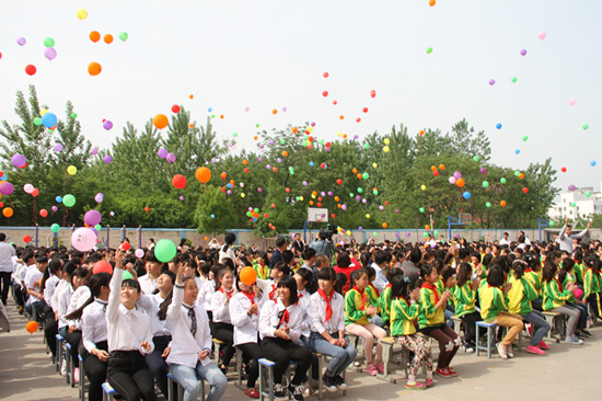 甜蜜诱人的多层生日蛋糕在一首《生日快乐》歌中被缓缓推出,大家一起点燃14岁青春的蜡烛,也点燃了火热的青春。最后,同学们一起放飞手中的彩色气球,激发起在场所有人的青春激情和对未来的无限憧憬。
