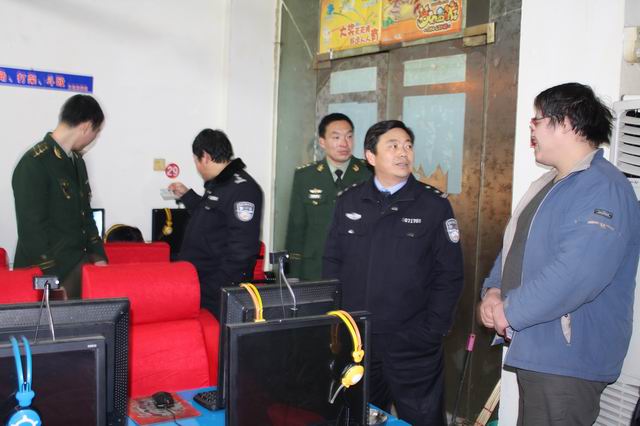 12月17日晚,我市公安部门联合消防、巡防队员对全市网吧进行了拉网式清理清查,排查整治安全隐患。