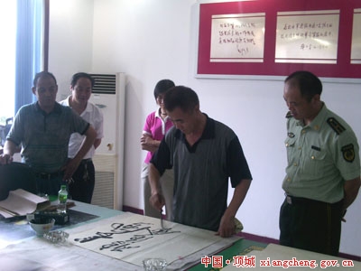 六位书画家在项城市文联主席赵辉同志的带领下走进红色警营,受到了官兵们的热烈欢迎。随后,在赵洪海教导员的陪同下,大师们参观了营区建设、装备器材、官兵内务等营区设施,书画家们对大队整洁的营区环境赞叹不已。当赵洪海教导员提出请书画家们表演手艺,以作纪念时,他们欣然应允。