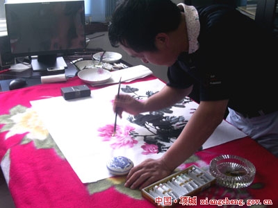 直至当晚7时,书画家们才依依不舍离开红门,他们共作画5幅,书法30余幅。