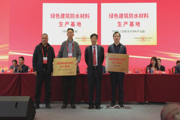 会上,中国硅酸盐学会防水材料专委会向三店镇(防水产业园)颁发了"中国绿色建筑防水材料生产基地"荣誉奖牌。