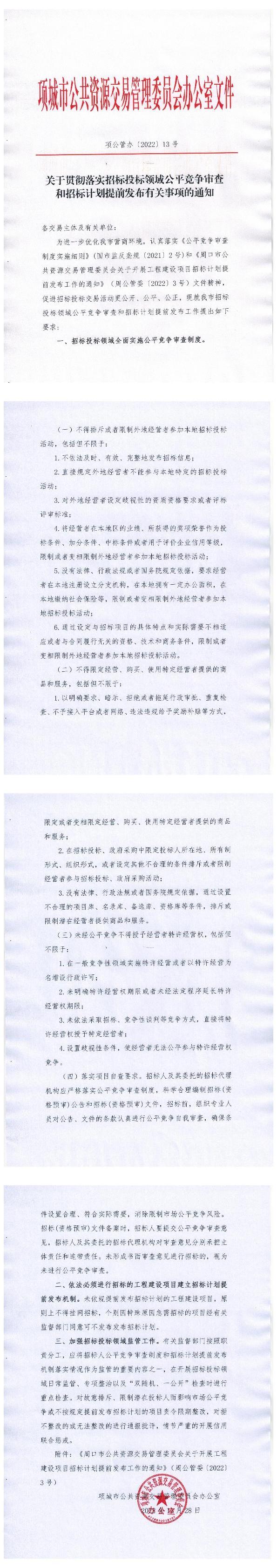 关于贯彻落实招标投标领域公平竞争审查和招标计划提前发布有关事项的通知