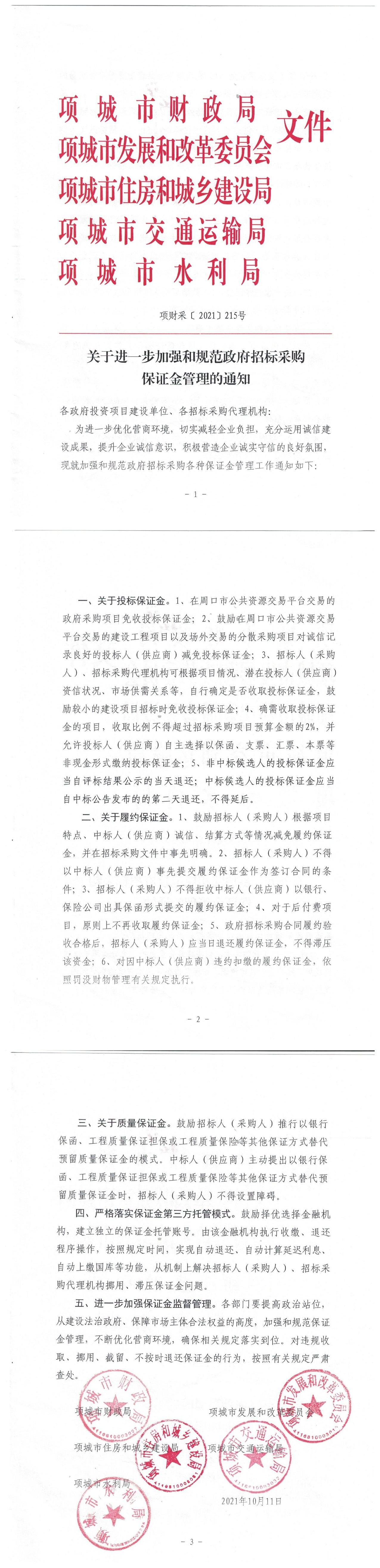 项城市关于进一步加强和规范政府招标采购保证金管理的通知