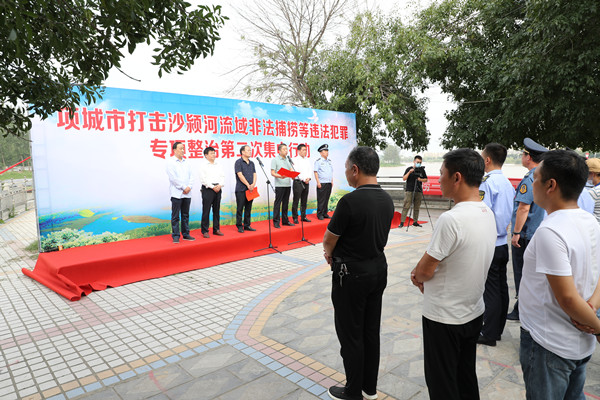 本网讯 9月3日下午,我市开展打击沙颍河流域非法捕捞等违法犯罪专项整治第二次联合执法行动。此次专项整治行动的主要任务是,全面贯彻市委、市政府关于水生态环境保护工作的系列部署,严厉打击沙颍河流域涉水违法犯罪活动,坚决保护沙颍河流域水生态安全,维护流域正常水事秩序。副市长、公安局局长万东伟出席活动,并宣布项城市打击沙颖河流域非法捕捞等违法犯罪专项整治第二次联合执法行动正式开始。
