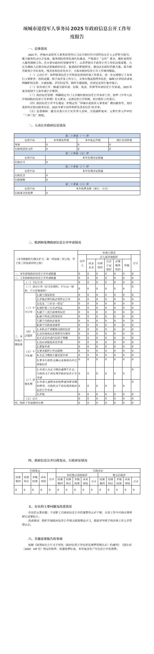项城市退役军人事务局2025年政府信息公开工作年度报告
