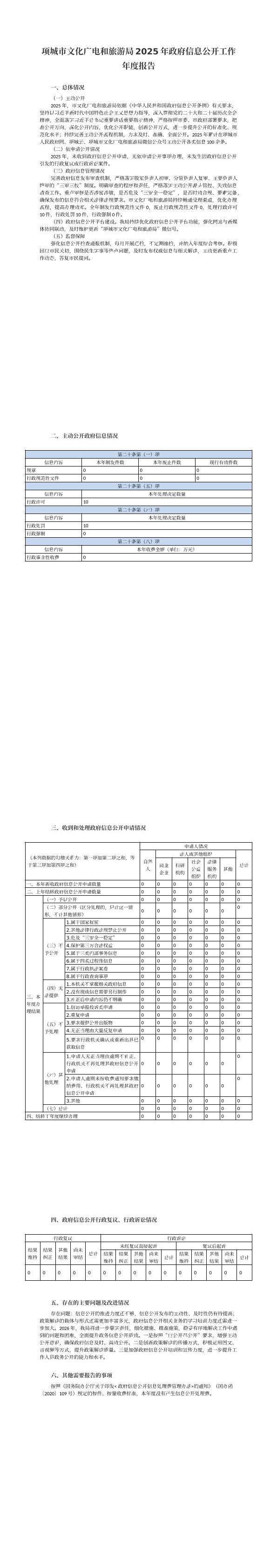项城市文化广电和旅游局2025年政府信息公开工作年度报告