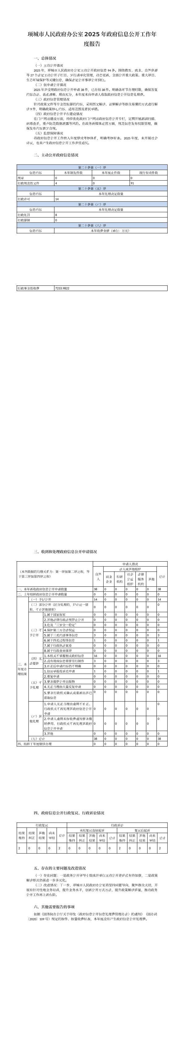 项城市人民政府办公室2025年政府信息公开工作年度报告