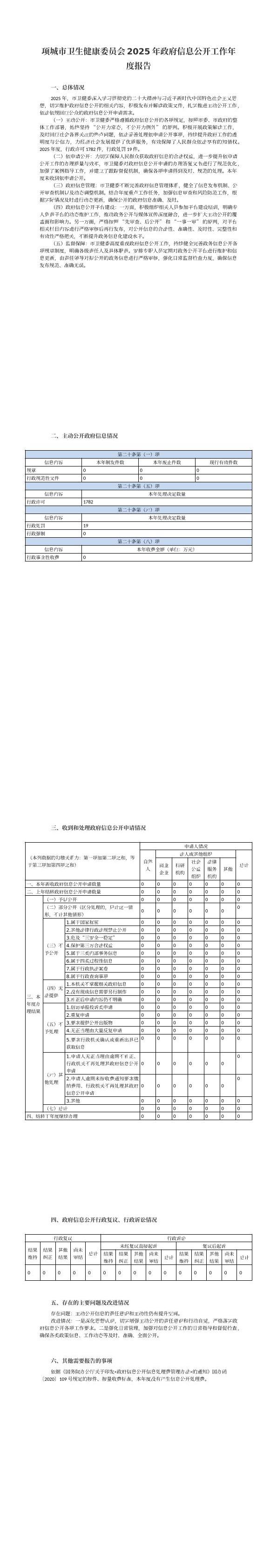 项城市卫生健康委员会2025年政府信息公开工作年度报告