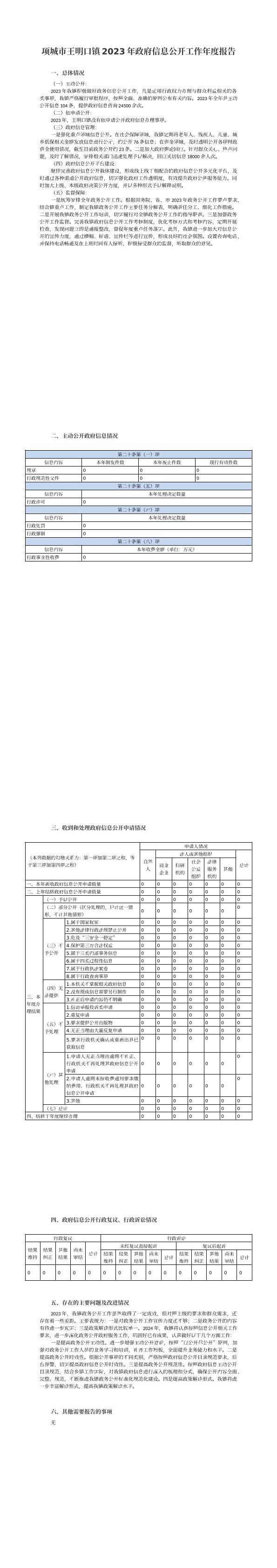 项城市王明口镇2023年政府信息公开工作年度报告