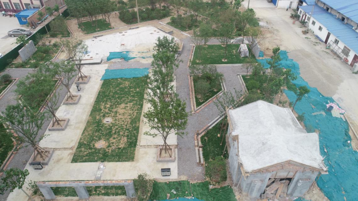 该游园占地0.36hm 2 ,2019年4月开工建设,2019年7月竣工并投入使用。由央美空间文化公司设计,乔灌花草球配置合理,绿化层次分明,园内建有公厕、园路、广场、廊架等,设有健身器材、休闲座椅等设施,服务功能完善。