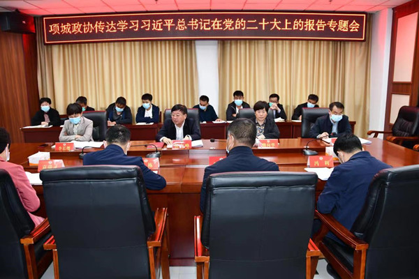 本网讯 10月20日,项城市政协召开专题会议,学习传达习近平总书记在党的二十大上的讲话精神。项城市政协主席侯自峰,副主席熊向华、李长缨,党组成员时保华出席会议。