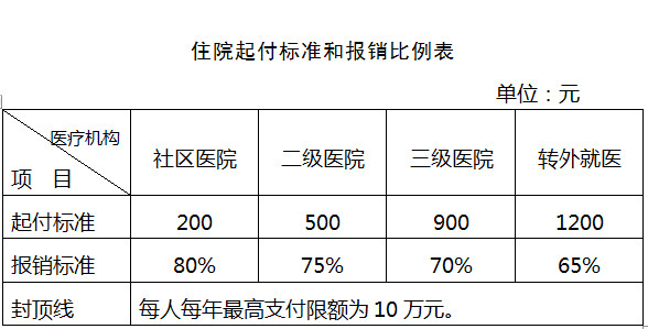 3、实行城镇居民大病保险(即:二次报销)。经城镇居民基本医疗保险基金按规定报销后,个人累计负担的合规医疗费用超过大病保险起付线的部分,由大病保险资金按规定进行二次报销。大病保险报销起付线为1.8万元,1.8―5万元(含5万元)报销50%;5―10万元(含10万元)报销60%;10万元以上报销70%。一个年度最高支付限额为30万元,只负担一次大病保险起付线。