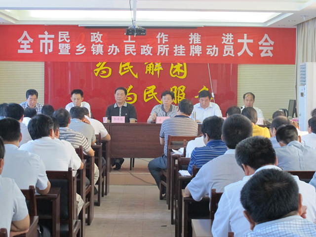 本网讯 8月11日上午,全市民政工作推进暨乡镇办民政所挂牌动员大会在市民政局召开,市人大常委会副主任李峰岗、副市长方强、市政协副主席王养领出席会议。 各乡镇、办事处负责人参加了会议。