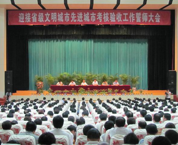 本网讯 9月1日上午,我市迎接省级文明城市先进城市考核验收工作誓师大会在市人民会堂举行。市委副书记、政法委书记、市“三城联创”指挥部常务副指挥长孙鸿俊,市委常委、宣传部长、市政府党组成员崔世领,市人大常委会副主任、市“三城联创”指挥部副指挥长张春志,市人武部长翟胜山,市公安局政委张国营,市计生委主任田长海等出席会议。各乡镇党委书记及分管副职,各办事处、市直各单位全体班子成员等参加了会议。崔世岭主持会议。