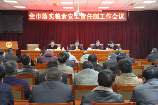 本网讯 12月14日上午,我市落实粮食安全责任制工作会议在党政综合楼三楼会议室召开。副市长王拥军出席会议。