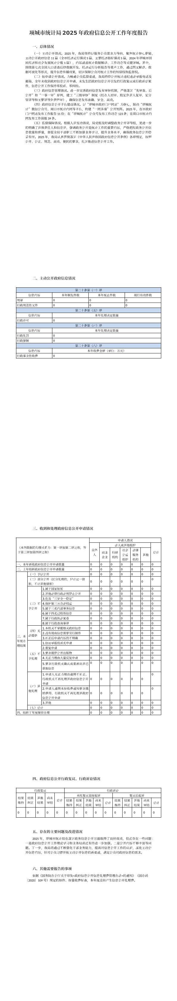 项城市统计局2025年政府信息公开工作年度报告